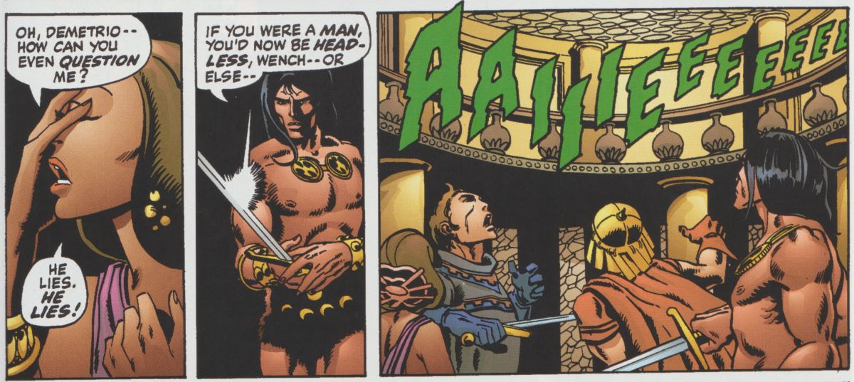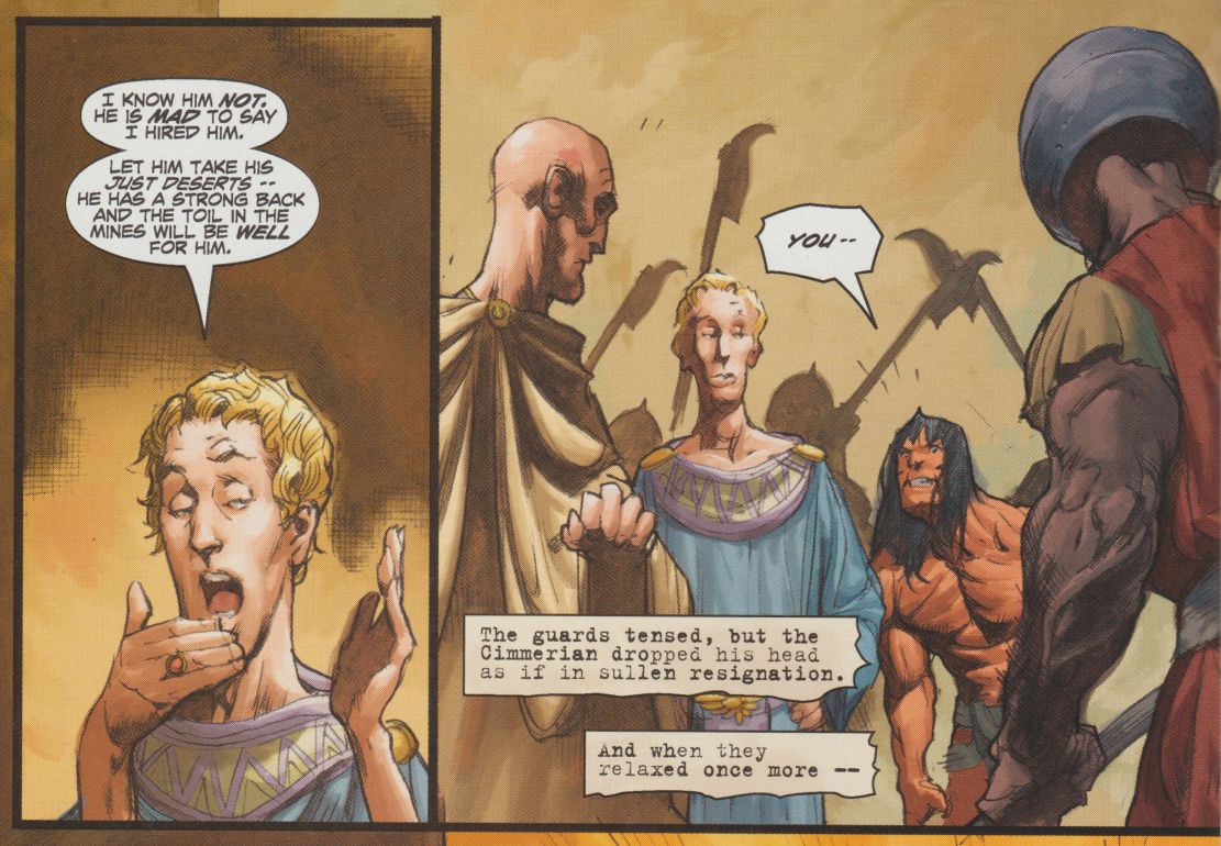Das letzte Bild, in dem der verwöhnte Jüngling noch seinen Kopf auf den Schultern hat. Aus Conan 11, Dark Horse 2004.