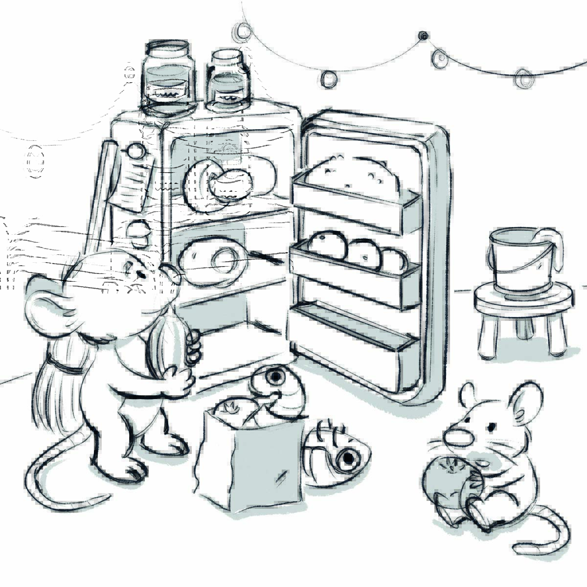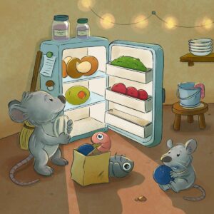 Da wir Rennmäuse als Haustiere haben hatte ich auf jeden Fall Lust ein Motiv mit Mäusen zu wählen, auch wenn die Mäuse auf dem Motiv keine Rennmäuse sind. Und da ich einen Wintermonat zugelost bekommen habe, habe ich eine heimelige Szene gewählt. Ich mag dunklere Motive in denen es eine Lichtquelle gibt.