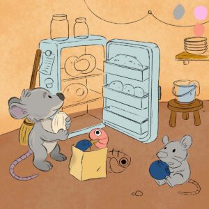 Da wir Rennmäuse als Haustiere haben hatte ich auf jeden Fall Lust ein Motiv mit Mäusen zu wählen, auch wenn die Mäuse auf dem Motiv keine Rennmäuse sind. Und da ich einen Wintermonat zugelost bekommen habe, habe ich eine heimelige Szene gewählt. Ich mag dunklere Motive in denen es eine Lichtquelle gibt.