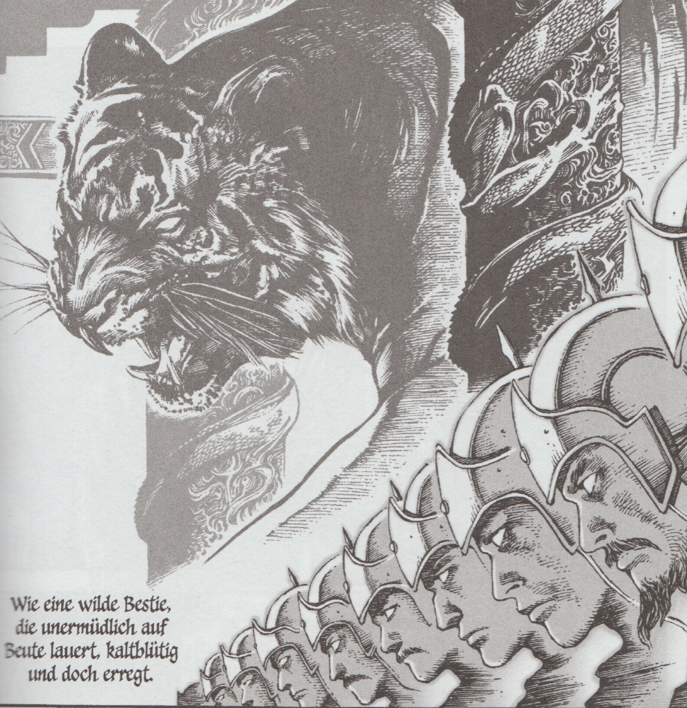 Die Handlung setzt zur „Zeit der drei Reiche“ ein (220 bis 280 nach Christus), eine der berühmtesten Zeitperioden in der chinesischen Geschichte. Im 14. Jahrhundert erschien darüber der monumentale Roman Die Geschichte der drei Reiche. Er erzählt, so steht es in Jing Lius Chinas Geschichte im Comic, „von Helden und Bösewichten, von Kriegstaktiken und politischer Strategie, von Loyalität und Verrat. Er umfasst 1191 Figuren, dies ist ein Rekord unter allen chinesischen klassischen Romanen.“ Ravages of Time dürfte gut und gern das Manhua-Pendant zu diesem Werk sein. Das Personenregister des ersten Bands umfasst satte 34 Akteure, je mit einer Kurzbeschreibung versehen. Ich habe das Register als Stütze sehr zu schätzen gelernt.
