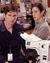 Ich liebe Jennifer Connelly. Seitdem ich sie zum ersten Mal in "Labyrinth" gesehen habe. Und auch hier ist sie wieder toll. Genau wie der Rest der Besetzung eigentlich auch. Besonders Newcomer Eric Bana fällt sehr positiv auf. Dafür sind allerdings einige Rollen etwas merkwürdig. Nick Nolte als verrückter Wissenschaftler/"Pudel-Pate" und auch Glenn Talbot, der komplett eingegipst dem Hulk eine Genprobe entnehmen will, wirken lächerlich und unrealistisch (und in einem Film in dem ein großes grünes Monster die Titelrolle spielt, will das schon was heißen). Sogar völlig fehlplatziert wirken oftmals aber die verschiedenen Comicelemente die Ang Lee hat einfließen lassen. Die Comicschrift im Vor- und Abspann wäre ja noch ganz okay, aber noch viel schlimmer sind die verwendeten Splitscreens mit denen Lee wohl die Panel eines Comics nachstellen wollte. Doch während die Panels in einem Comic den Ablauf von Zeit darstellen, wird Zeit im Film schon durch etwas anderes vermittelt (durch Zeit nämlich) und so wirken die Panel im Film lächerlich, wie seinerzeit die Comiczeichnungen bei "Tank Girl". Eine weitere Effektreihe, die bei "Hulk" (negativ) auffällt, sind die Überblendungen, bei denen die Szenen merkwürdig inneinander übergehen, Bildteile ausgeschnitten werden und Figuren aus einem Bild ins nächste laufen. Loben muss man den Film aber auf jeden Fall für den Hulk selbst. Es ist tatsächlich gelungen, den grünen Goliath überzeugend für's Kino umzusetzen. Da kann man wirklich nicht meckern. Der Schluss des Films hingegen, bei dem Bruce seinem Vater gegenübergestellt wird, sich beide verwandeln und zu einem See hüpfen (bzw. blitzen), wo es dann zum Showdown kommt, ist in vielerlei Hinsicht sehr enttäuschend. Nachdem Hulk in der weiten Wüste gegen Helicopter kämpfte und durch die Straßen von San Fransisco wütete ist der nächtliche Kampf im See äußerst unspektakulär. Und auch für ein bewegendes Drama, das Ang Lee aus diesem Film ja machen wollte, ist die Gegenüberstellung von Vater und Sohn (aus Sicht der Militärs) eigentlich total unlogisch und der eher langweilige (und relativ belanglose) Kampf kein passender Abschluss.