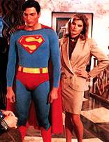 Superman IV: The Quest For Peace GB 1987, Regie: Sidney J. Furie, Drehbuch: Christopher Reeve, Lawrence Konner und Mark Rosenthal, Hauptdarsteller: Christopher Reeve (Superman/Clark Kent), Mark Pillow (Nuklear Mann), Mariel Hemingway (Lacy Warfield), Margot Kidder (Lois Lane), Gene Hackman (Lex Luthor), Jon Cryer (Lenny Luthor), Sam Wanamaker (David Warfield), Jackie Cooper (Perry White), Marc McClure (Jimmy Olsen), Damien McLawhorn (Jeremy)