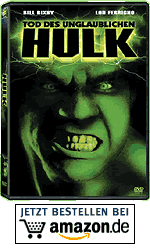 Im weiteren Verlauf des Filmes müssen Hulk und Thor einer kriminellen Bande das Handwerk legen, was das "dynamische Duo" schlussendlich auch erreicht. Am Ende des Filmes sehen wir, wie sich Dr. David Banner mit all seinem Hab und Gut in einem Rucksack verstaut auf Wanderschaft macht und darauf hofft eines Tages ein Gegenmittel gegen seine Krankheit zu finden.Dieser Film kann allerdings nicht gerade überzeugen und erreicht höchstens ein nettes Schmunzeln bei dem Auftritt von Thor. Der Rest der Handlung ist einfach nur sehr flach, was auch damit zusammenhing, da man möglichst schnell einen Film ausstrahlen wollte, um die Popularität des Hulk wieder zu steigern. Die deutsche Videofassung des Films trägt übrigens den Namen "Thor 2000"... "Der unheimliche Hulk vor Gericht" ("The Trial of The Incredible Hulk") Ein unwahrscheinlich amüsanter Streifen, den man 1989 auf das Publikum los lies. In dem Film geht es darum, dass David Banner Zeuge bei einem Überfall auf eine Frau wird und dieser zu helfen versucht. Doch er verwandelt sich dabei allerdings in den Hulk und kann zwar die Angreifer, Kriminelle Marionetten des Kingpin, in die Flucht schlagen, wird aber für die Tat verantwortlich gemacht und von der Polizei festgenommen, nachdem man ihn in seiner normalen Gestalt auffinden kann. Dementsprechend findet er sich kurz darauf vor Gericht wieder und wird von niemand weniger als von Matt Murdock (Daredevil) verteidigt. Was vor sich geht ist eine wahre Verschwörung, da der Kingpin die Frau und somit einzige "wahre" Zeugin erpresst, damit alle Aussagen gegen Banner stehen. Während der Gerichtshandlung kann sich aber David Banner nicht zurück halten und der psychische Stress löst in ihm auf ein weiteres die Verwandlung in die grüne Wutmaschine aus. Matt Murdock der aufgrund seiner Gabe bereits vorher ahnte um wen es sich bei David Banner handelte, spürt diesen als Daredevil auf und macht sich zusammen auf den Weg um Kingpin endlich zu besiegen… Sehr spannend ist hierbei zu sehen, wie weit sich die Kostümdesigner von der Vorlage bei Daredevil entfernt haben. So trägt er ein schwarzes Kostüm statt des bekannten roten Kostüms, was gleichzeitig sehr atmosphärisch kommt, allerdings auch sehr ungewohnt ist. Auch Kingpin erscheint dem Comicleser sehr ungewohnt. "Der Tod des unglaublichen Hulk" ("The Death of The Incredible Hulk") Der letzte und abschließende Film des "Incredible Hulks" bei dem Bill Bixby persönlich Regie führte, gehört aus meiner persönlichen Sicht mit zu einem der interessantesten der vier Features. Zwar gibt es auch hier immer noch Szenen, die einen zum Schmunzeln bringen, aber so ist das nun mal mit den alten Filmen und der damaligen begrenzten Möglichkeit Superhelden glaubhaft auf der Leinwand darzustellen. Wir befinden uns in einem Labor in dem David Banner unter einem gefälschten Namen als Reinigungskraft eingestellt ist. Nachts allerdings schleicht er sich in das Labor des Forschers Pratt, um die von ihm herausgefundenen Ergebnisse zu überprüfen und auch zu verbessern, stets mit dem Hintergedanken dadurch eine Möglichkeit zu finden, das Monster in ihm zu vernichten. Natürlich fallen Dr. Pratt die Veränderungen auf und er begibt sich auf die Suche nach dem "Geist" und ertappt Banner dabei, wie er die Ergebnisse korrigiert. Von dem Punkt an, vertraut Banner ihm seine Vergangenheit an, was dazu führt, dass er eine sehr persönliche Beziehung zu Dr. Pratt und seiner Frau entwickelt, und lässt sich daraufhin überreden sich in den Hulk zu verwandeln, um unter einer sicheren Forschungssituation untersucht zu werden. Als Banner die Videoaufzeichnungen betrachtet, sieht dieser zum ersten Mal wie sein zweites Ich aussieht. Der spätere Heilungsversuch wird wiederum vereitelt, da eine Terroristin namens Chamäleon in das Labor eindringt und Banner sich in dem Hulk verwandelt um Pratt zu verteidigen. Dabei werden wiederum alle Möglichkeiten der Heilung vernichtet. Daraufhin lernt er die Frau kennen, die sich als Chamäleon ausgab und erfährt, dass sie erpresst wird und versucht ihr zu helfen. Nebenbei verlieben sich die beiden ineinander und Banner hat zum ersten Mal wieder jemanden an seiner Seite, der ihn glücklich macht. Bei dem Versuch zwei Top-Terroristen zu stoppen, die in einem Flugzeug fliehen wollen, verwandelt sich Banner am Ende des Films in den Hulk und kann in das Flugzeug eindringen. Als innerhalb des Cockpits auf ihn geschossen wird, führt dies zur Explosion des Flugzeugs und der Hulk stürzt aus der Höhe auf den Boden und kommt beim Aufprall ums Leben. Endlich ist er von den Qualen erlöst und wieder frei... Fazit: Es ist sehr interessant, dass ein Charakter wie der Hulk gerade durch die damalige Fernsehserie in den Köpfen der Leute geblieben ist und so populär wurde. Alle vier Filme gehören bestimmt nicht zu den "best produced movies ever" aber wissen doch auf einer gewissen Ebene zu unterhalten. So ist zum Beispiel der letzte Film soeben auf DVD in Deutschland erschienen und definitiv ein freudiges Erlebnis bei einem Videoabend. pf |